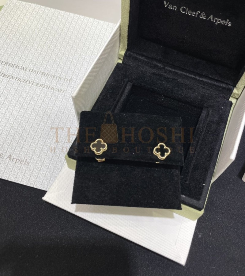 VAN CLEEF & ARPELS ALHAMBRA VINTAGE EARRINGS MINI 18K YELLOW GOLD/WHITE MOTHER-OF-PEARL MASTER QUALITY