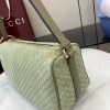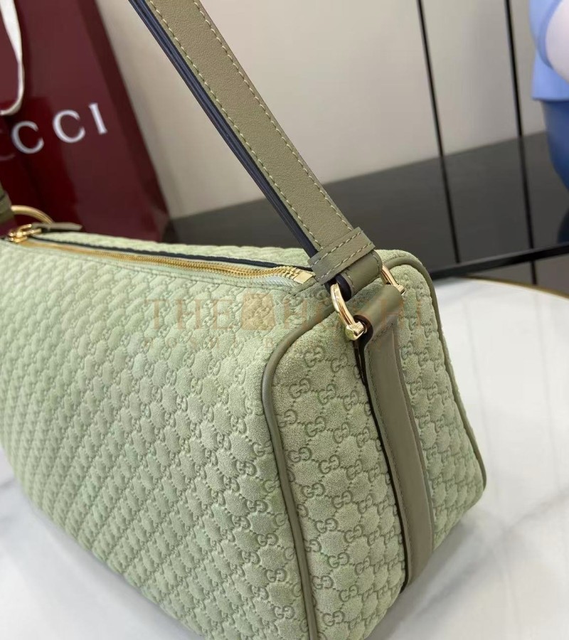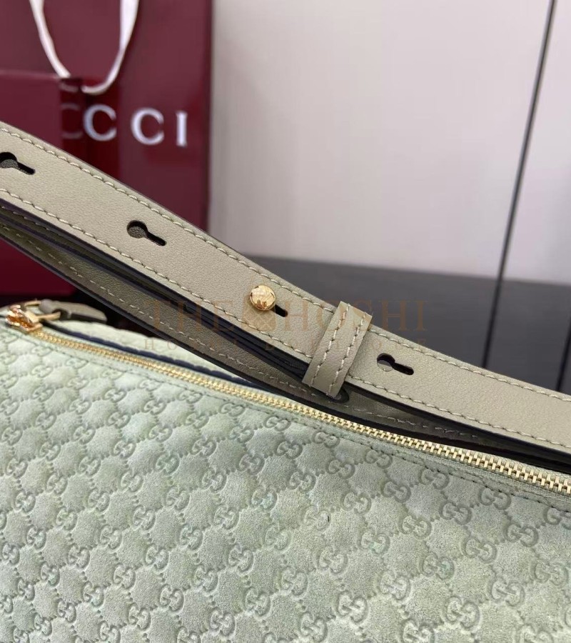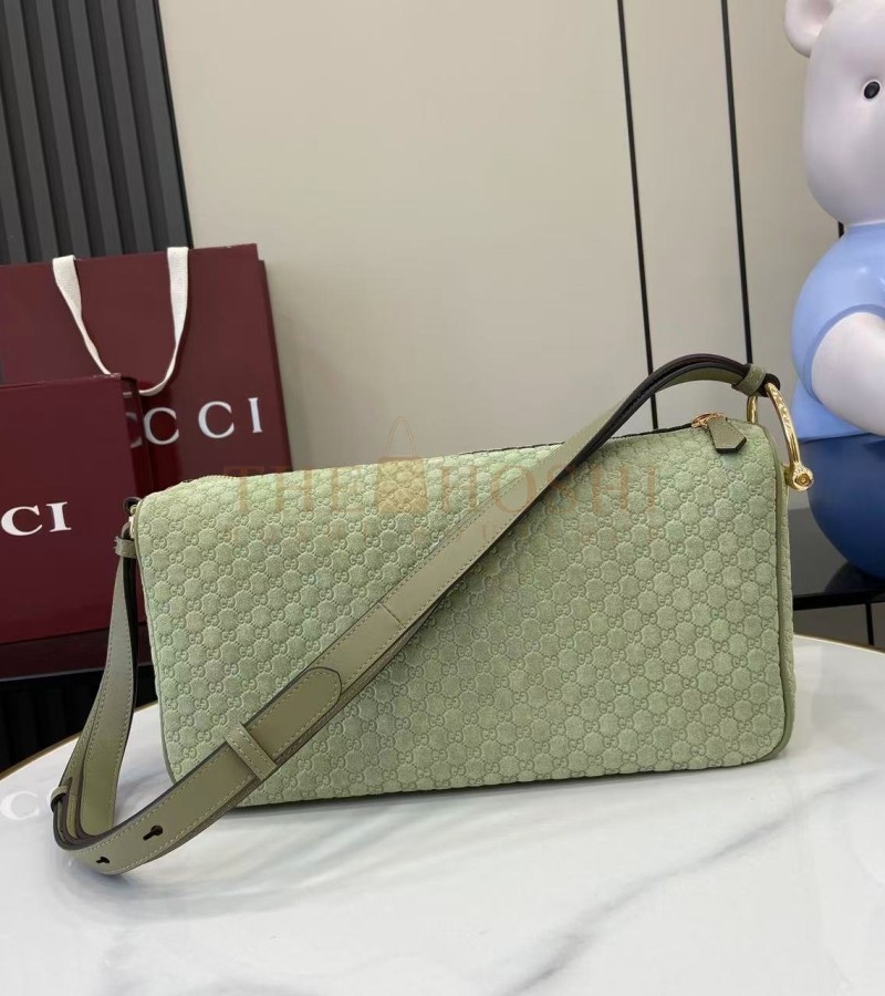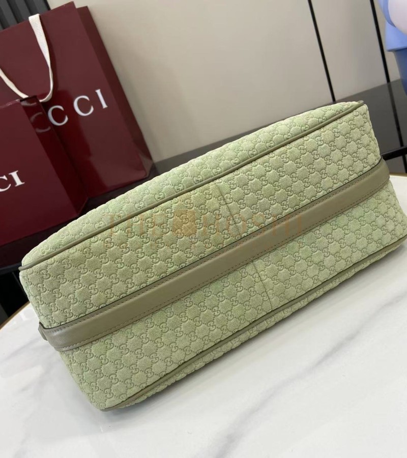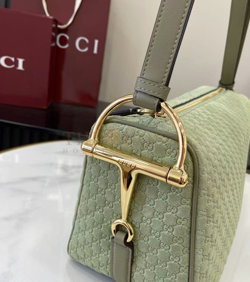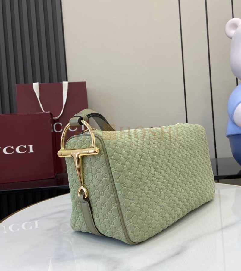 GUCCI HALF HORSEBIT SHOULDER BAG BROWN GG EMBOSSED SUEDE BROWN 31.5×17×12CM