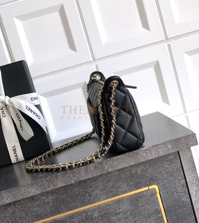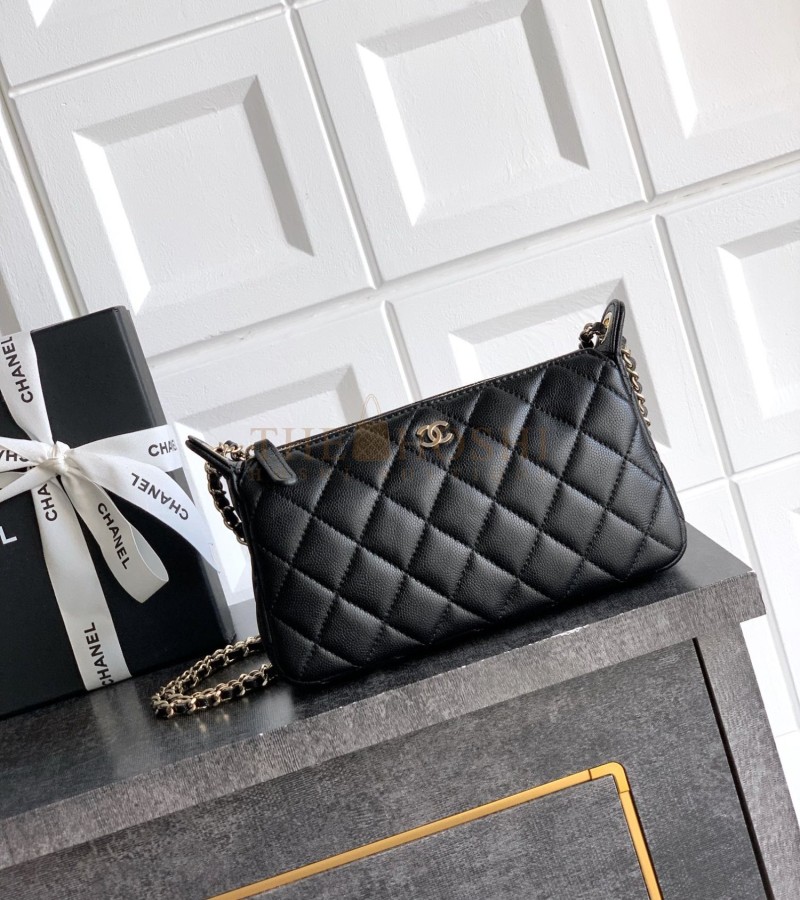 CHANEL 25A CLUTCH ON CHAIN BAG BLACK CAVIAR LEATHER SIZE 21×12×5.5CM
