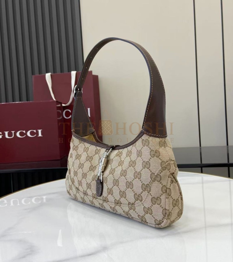 GUCCI JACKIE SLIM FAMIGLIA CROSSBODY BAG GG CANVAS LEATHER TRIM BEIGE BROWN 27×13×6CM MASTER QUALITY